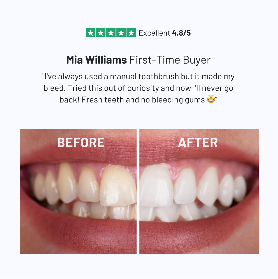 【Efficient Teeth Cleaning】Complete 360° cleaning in 45 seconds with automatic timer. Hands free design allow you to brush your teeth and handle other things at the same time.